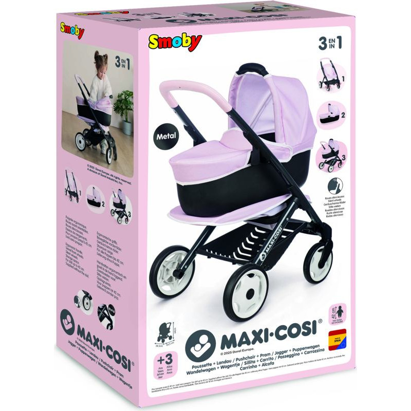 Smoby Maxi-Cosi 3-in-1 komplekts leļļu ratiņiem - rozā krāsā